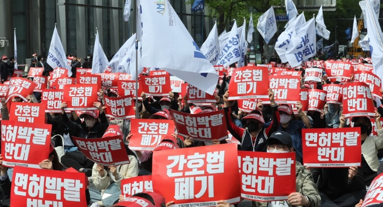 간호법 제정안과 의료법 개정안에 반발하며 의사와 간호조무사 등 보건복지의료연대가 부분 파업을 벌이기로 했다는 소식에 이어진 뉴스입니다.